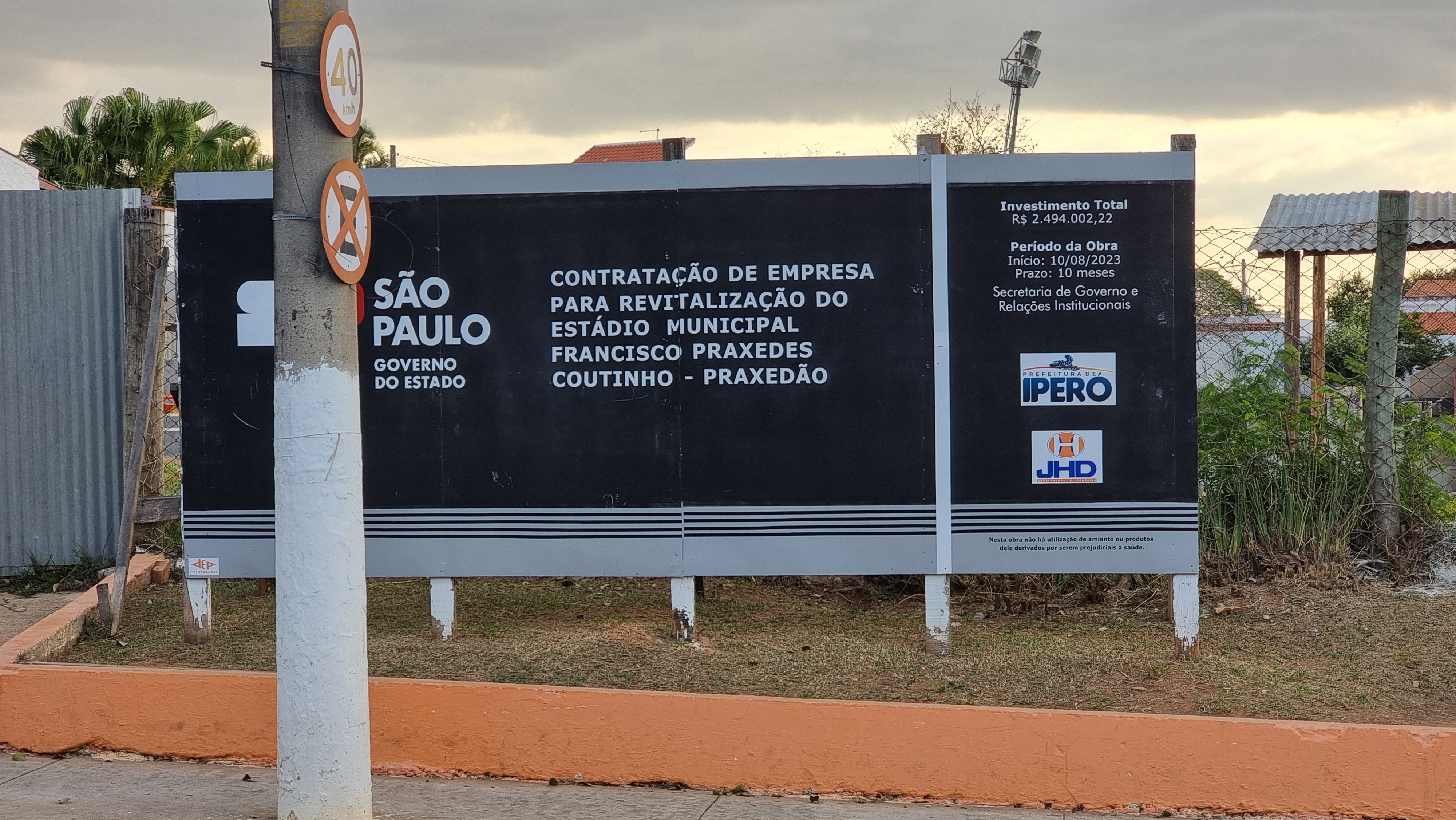 Em segundo lugar, enquanto isso não se torna possível de se concretizar, gostaria de evidenciar aqui alguns problemas com relação à reforma do Estádio Municipal. Primeiro, repare que, segundo informações da placa da obra, a data prevista para o término da reforma seria dia 10/06/2024 (10 meses a partir do início, 10/08/2023), portanto, este prazo já se encerrou. Diante disso, acredito que os iperoenses merecem uma explicação do prefeito sobre as razões do atraso da obra. Cumpre aos vereadores, por exemplo, questionar o chefe do executivo pedindo uma explicação através de ofício ao executivo sobre o atraso. Esse é justamente o papel de fiscalização do executivo que os vereadores devem exercer.